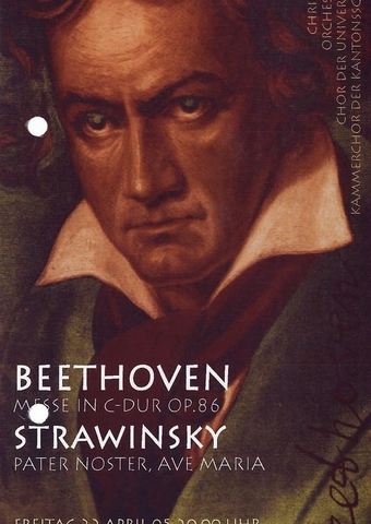 Im Frühling 2005 führte der Unichor Luzern Beethovens Messe in C-Dur op.86 auf. Ergänzt wurde das Konzertprogramm durch das Pater Noster und das Ave Maria von Igor Strawinsky. Gemeinsam mit Solisten, Orchester und dem Kammerchor der Kantonsschule Luzern durfte der Unichor Luzern zwei eindrückliche Konzerte in der Jesuitenkirche Luzern und der Klosterkirche St. Urban erleben.