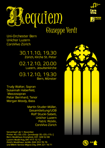 Im zweiten Semester 2010 führte der Unichor zusammen mit dem CoroVivo Zürich und dem Orchester der Universität Bern in Zürich, Luzern und Bern das Verdi Requiem auf. Alle drei Konzerte waren ausverkauft und ein beeindruckendes Erlebnis.