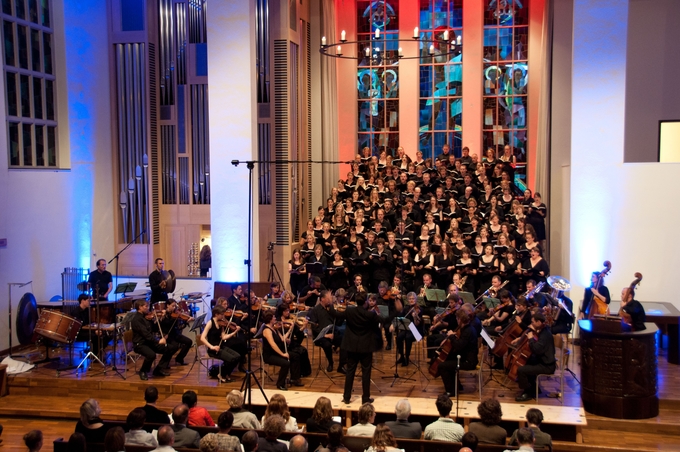 Zusammen mit dem Chor der PHZ Luzern und dem Orchester Santa Maria realisierte der Unichor die Friedensmesse "The Armed Man" – ein Werk, das mit traditionellen Mitteln eine höchst aktuelle Thematik beleuchtet. Rund 1'000 Zuschauerinnen und Zuschauer erlebten in der Lukaskirche zwei ausserordentlich bewegende Konzerte.