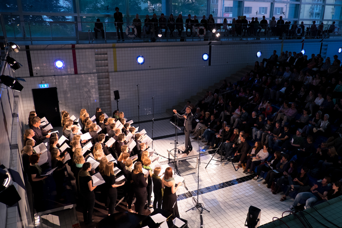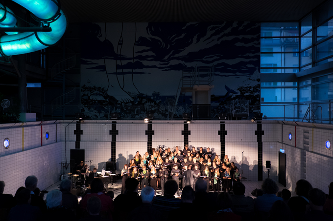 Mit der besonderen Atmosphäre im Neubad Luzern konnte sich das Publikum bei einem schwungvollen Chorkonzert mit Band auf das Pfingstwochenende einstimmen; auf dem Programm standen Hits wie «Proud Mary», «Man in the Mirror», «Only You» und «Jump».